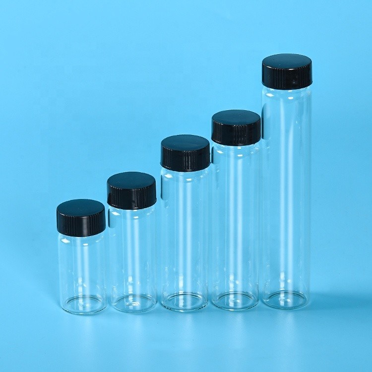 स्क्रू कैप के साथ उत्तम कारीगरी मिनी स्पष्ट नमूना कांच की शीशियाँ |