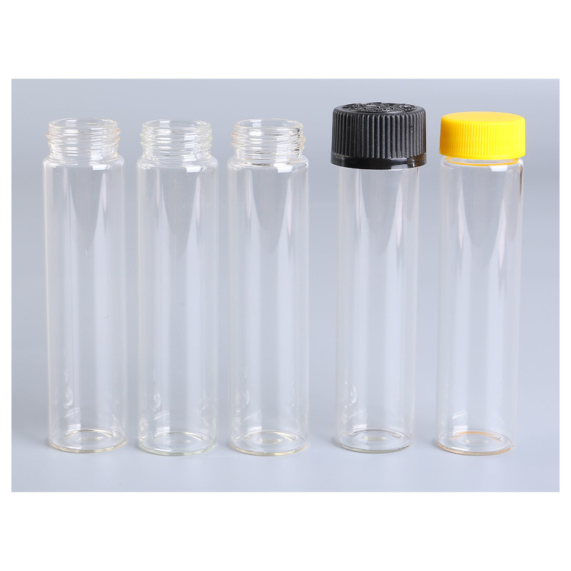 mała, pusta, przezroczysta szklana rurka z fiolką, butelka dryfująca z korkiem |